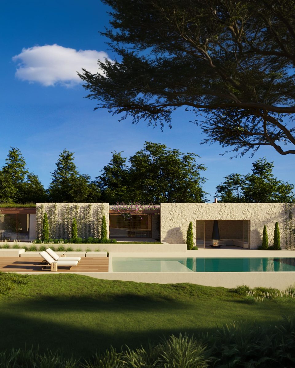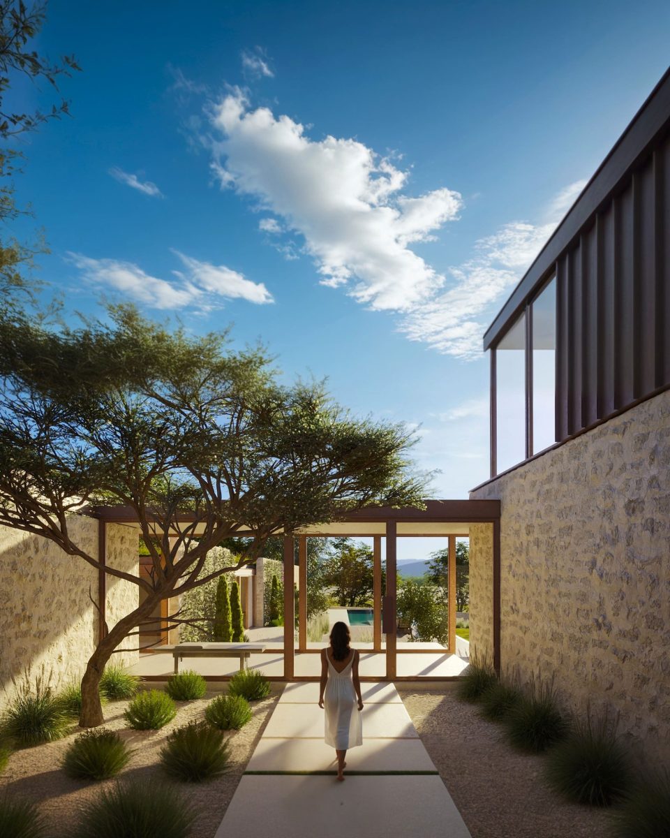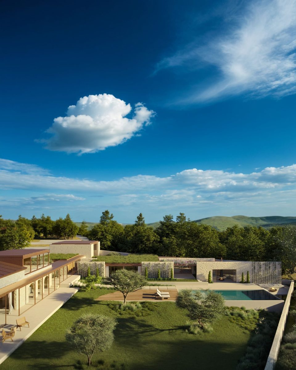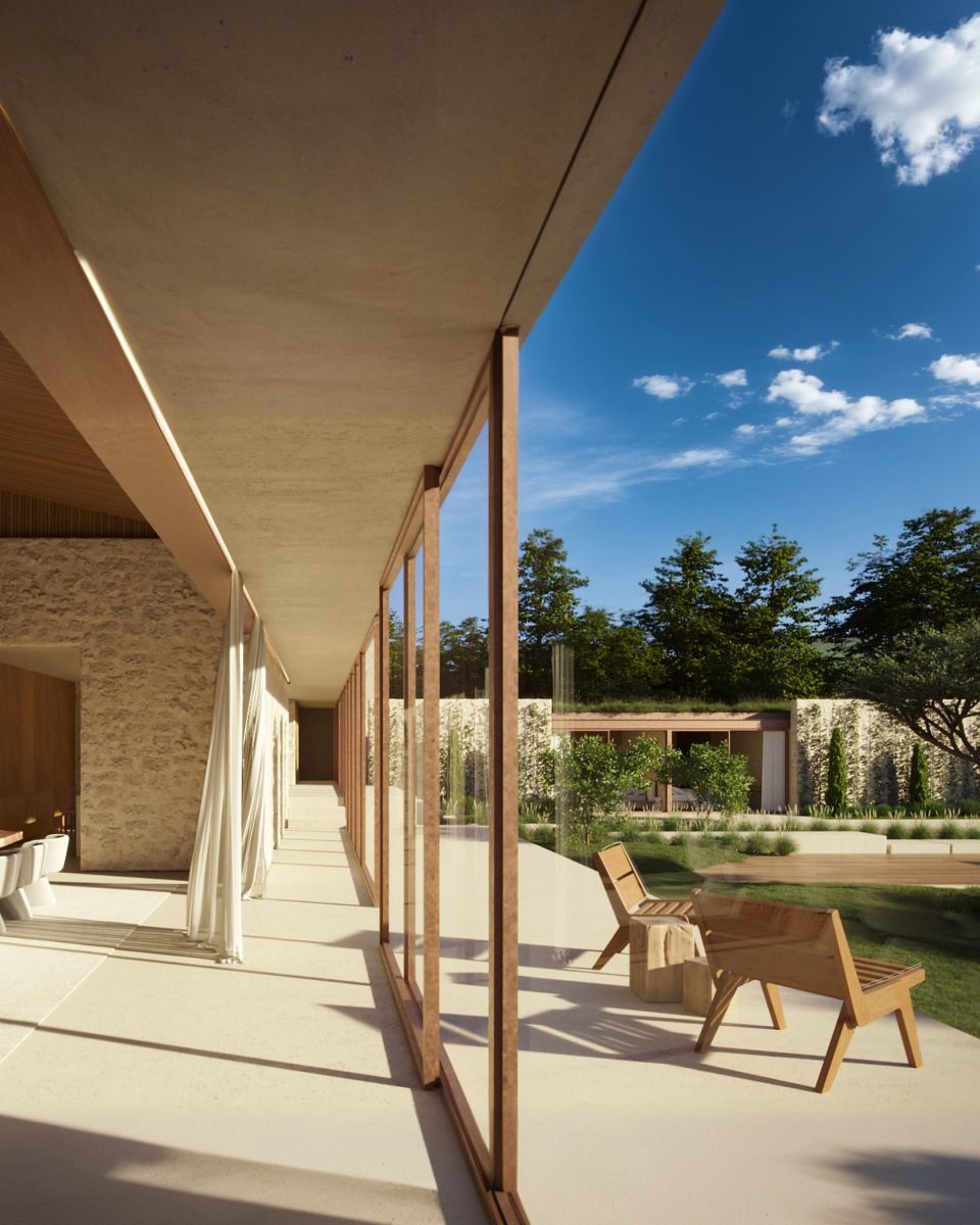 Light flows freely through every opening, softening boundaries and connecting the house to its landscape. The result is a space that embraces calm living, where silence, texture, and materiality shape an atmosphere of pure balance.