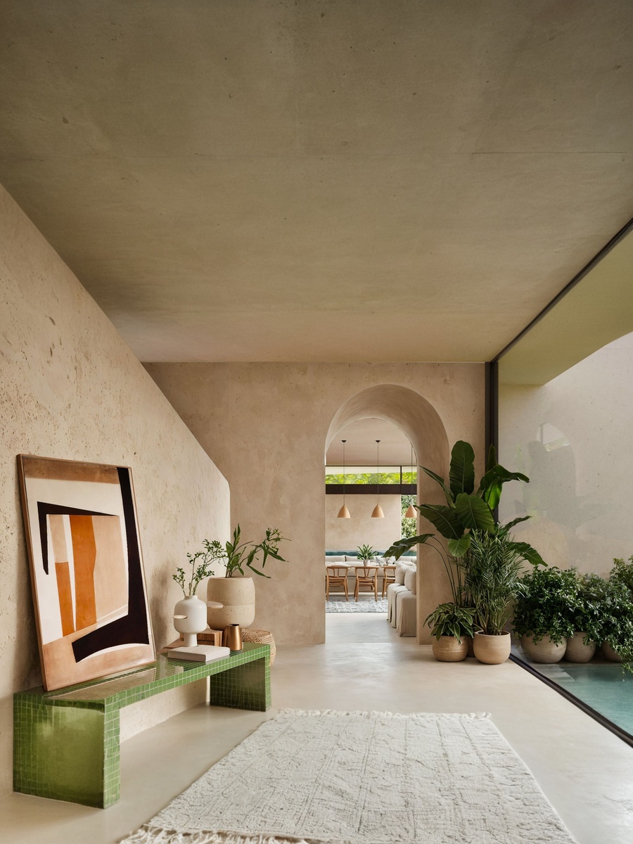 JAB House breaks away from the typical interior. Here, colour and texture are used as structure: saturated pigments, handcrafted finishes and unexpected pairings become the architectural language that organises the open plan. The result is a single flowing space stitched together by vivid accents and softened by greenery.