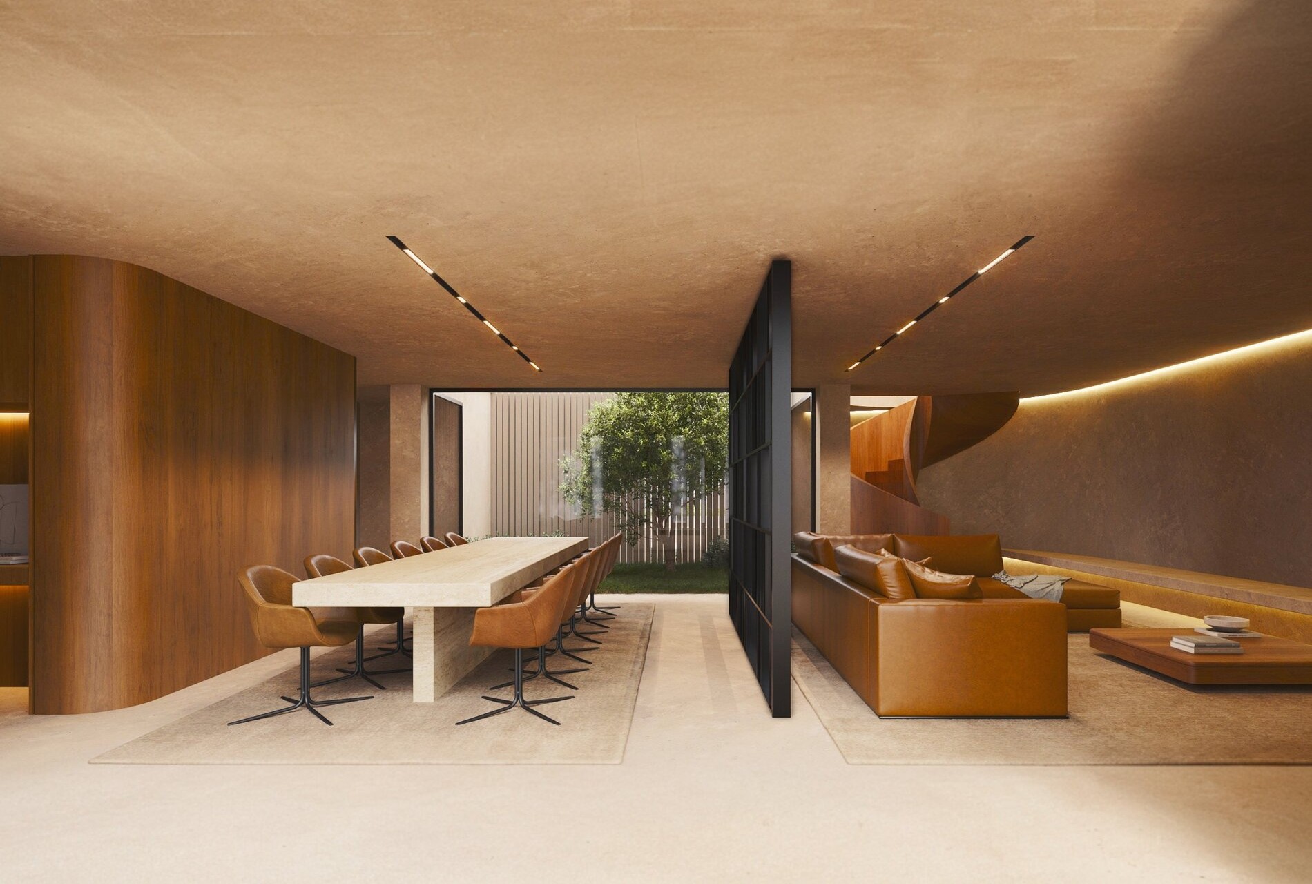 Each space follows the path of the sun, adapting to the morning glow, the warmth of the afternoon, and the shade that precedes nightfall. The structure shelters in the colder months and opens to the landscape whenever the climate allows. The careful choice and placement of materials ensure both thermal comfort and visual harmony.