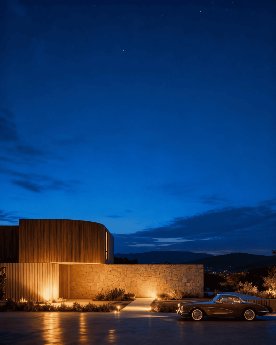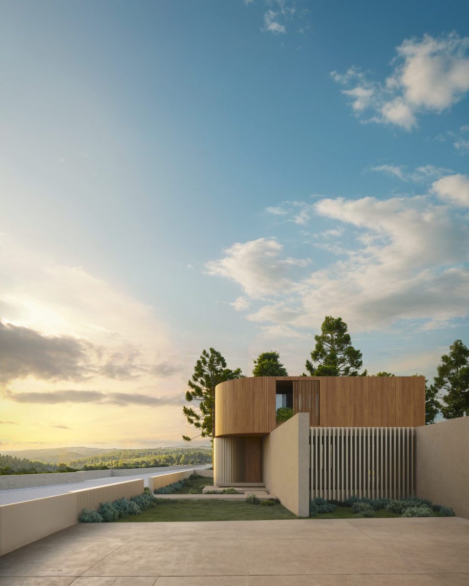 VMV House is our most recent project. Located in Viseu, overlooking the Serra da Estrela, the house combines a stone-clad ground floor with an upper wooden volume defined by its linear expression. The language is restrained, yet intense — matter revealed through light, and landscape becoming structure. A simple house balanced between mass, light, and calm.