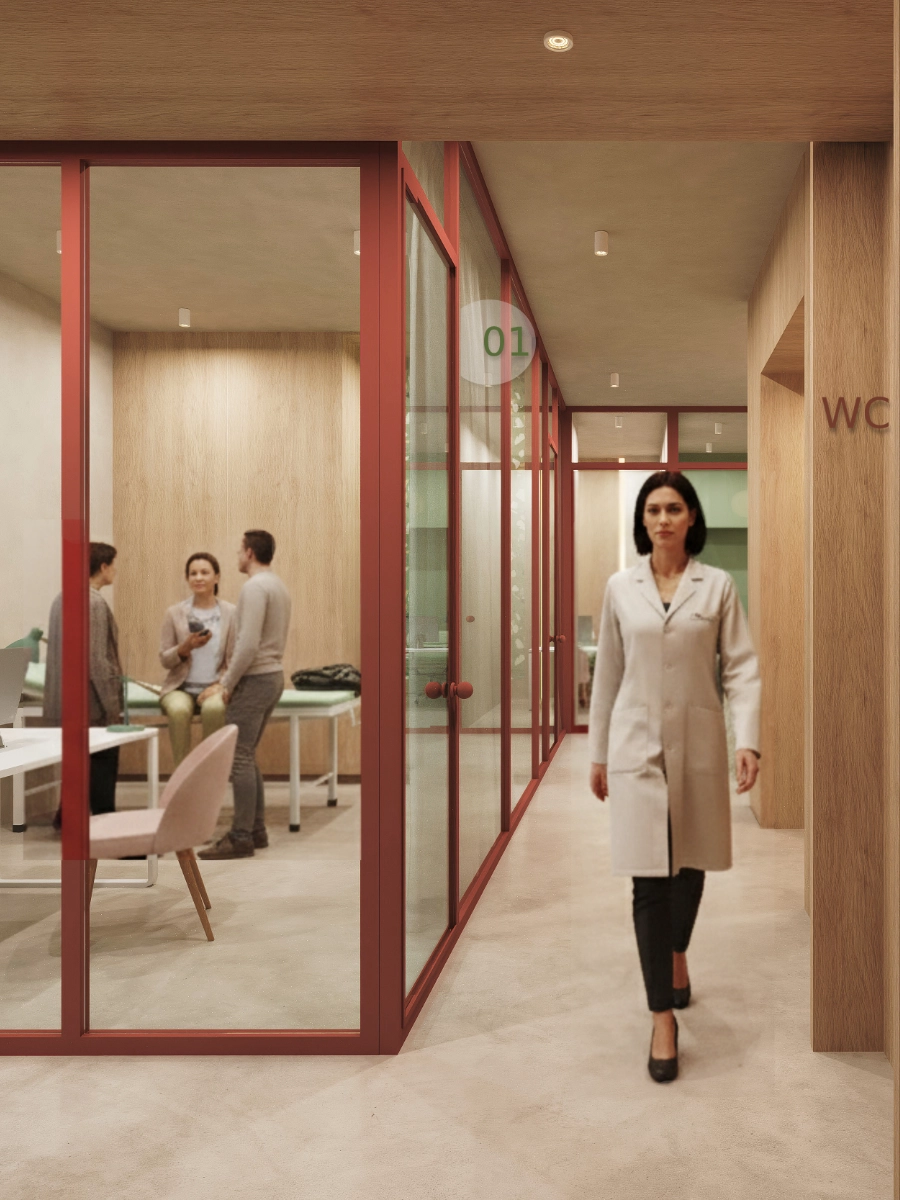 CSH Clinic is designed as a calming alternative to the traditional hospital feel. Daylight, warm materials and greenery reduce anxiety and build trust. Clear flows connect reception, waiting, consulting rooms and technical areas, supporting both patients and staff. Spaces meet clinical requirements, comply with current regulations, and integrate technology discreetly. The result is precise and professional, yet close and welcoming—from arrival to departure.