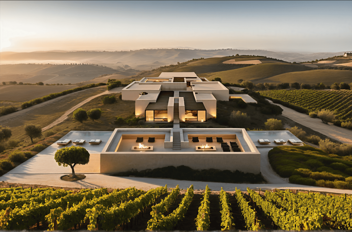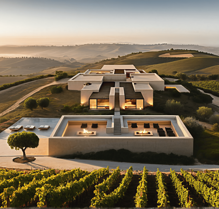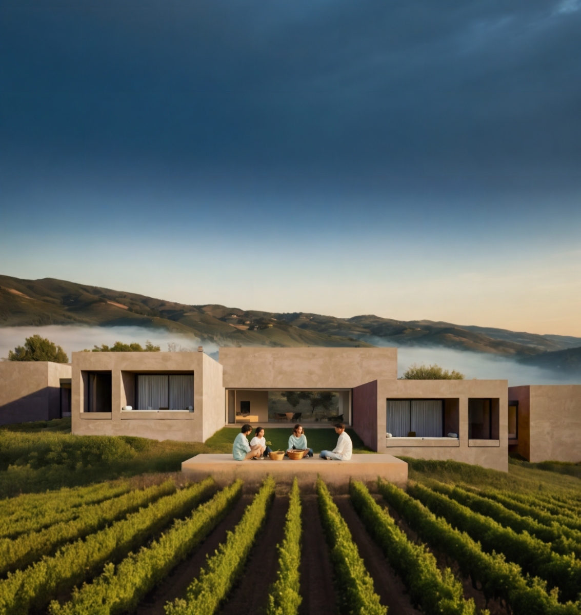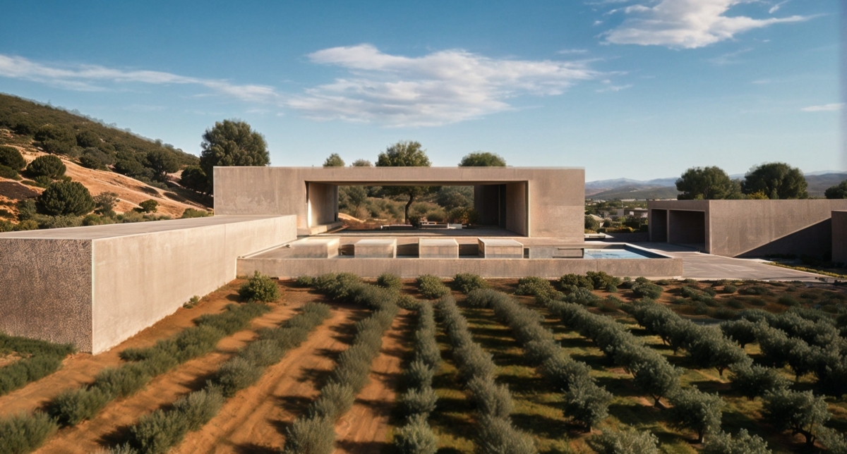 Implanted on a 6.25-hectare plot in the Alto Douro, this tourism project proposes architecture with simple lines and a strategic layout, inspired by the Roman organization of the cardo and decumano. It is distributed into three clusters of private villas, privileging the view and connection with the landscape. The volumetry recalls the vernacular language, with mass buildings that open up punctually to the exterior. The materiality — marked by stone, earthy tones, and natural textures — reinforces integration with the site. The building supporting the swimming pool functions as a central point for socializing and well-being, while the pedestrian paths and indigenous landscaping complete a sensory and immersive experience.