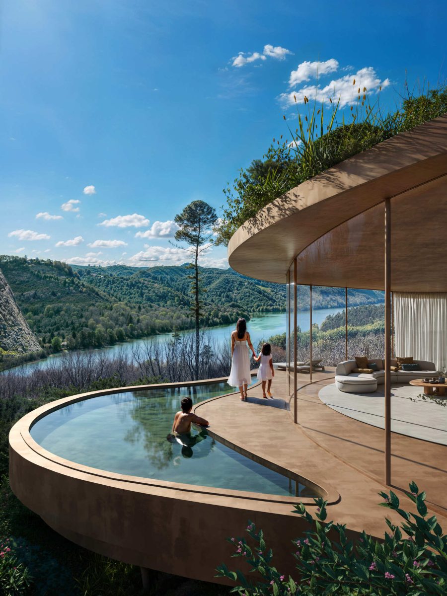 Ancient ruins, natural rocks, and vistas become anchors for the design, ensuring that each intervention respects the site’s memory and character. Here, architecture is not imposed but listened to — a gesture of harmony, intention, and care.