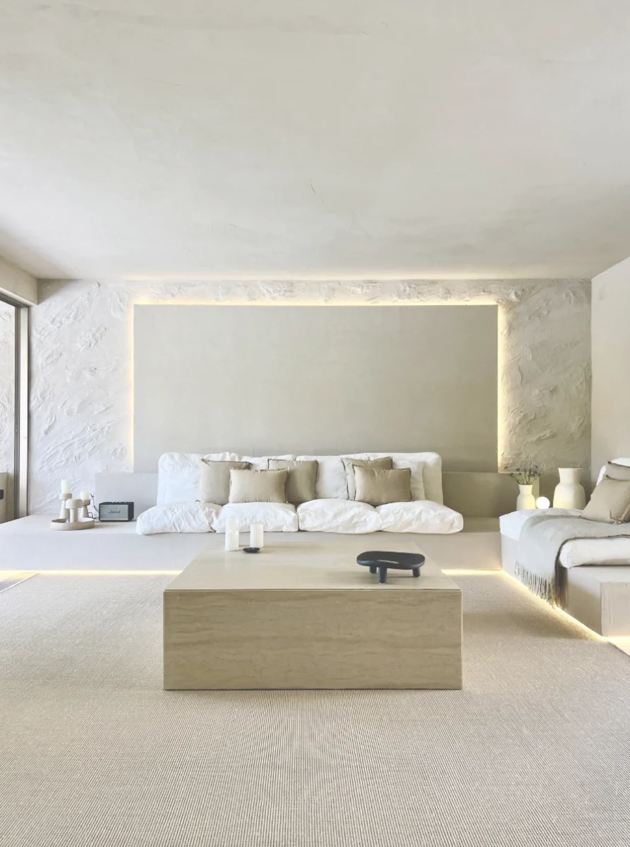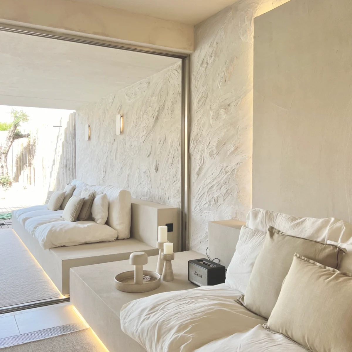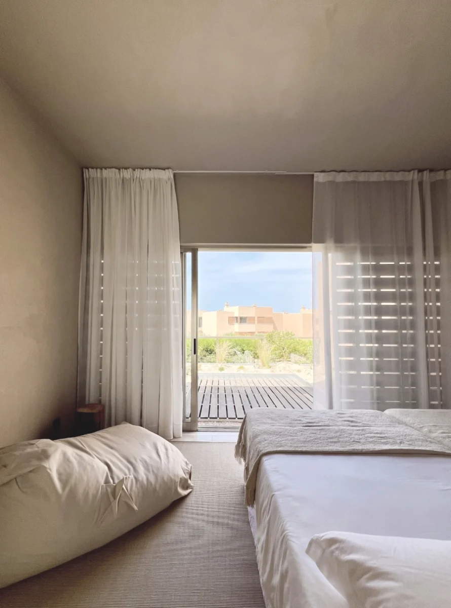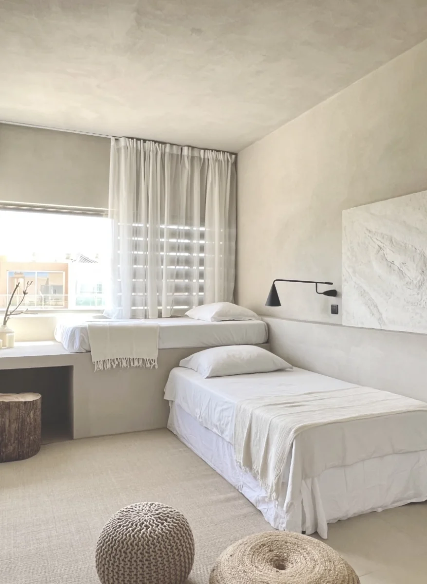 Biophilia serves as the foundation of the design, with a garden and pool area surrounded by natural elements like wood, creating privacy while fostering a deep connection to the environment. The entire project embraces the slow living philosophy, incorporating raw, natural textures and allowing materials to evoke the sensations and memories of the place.