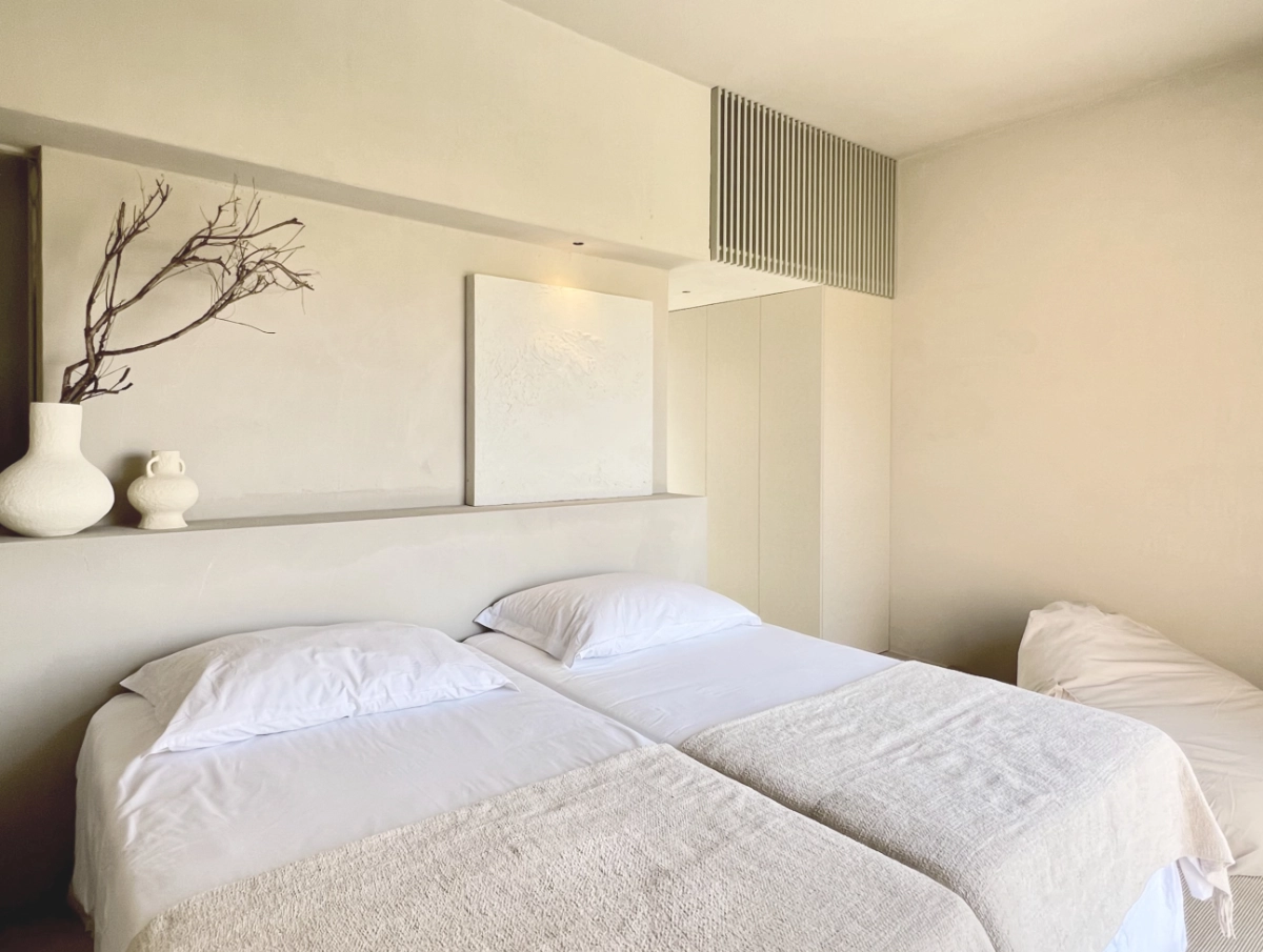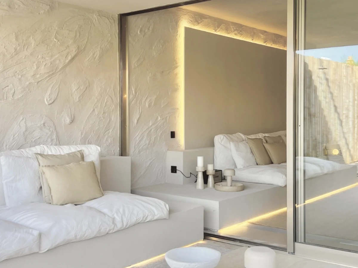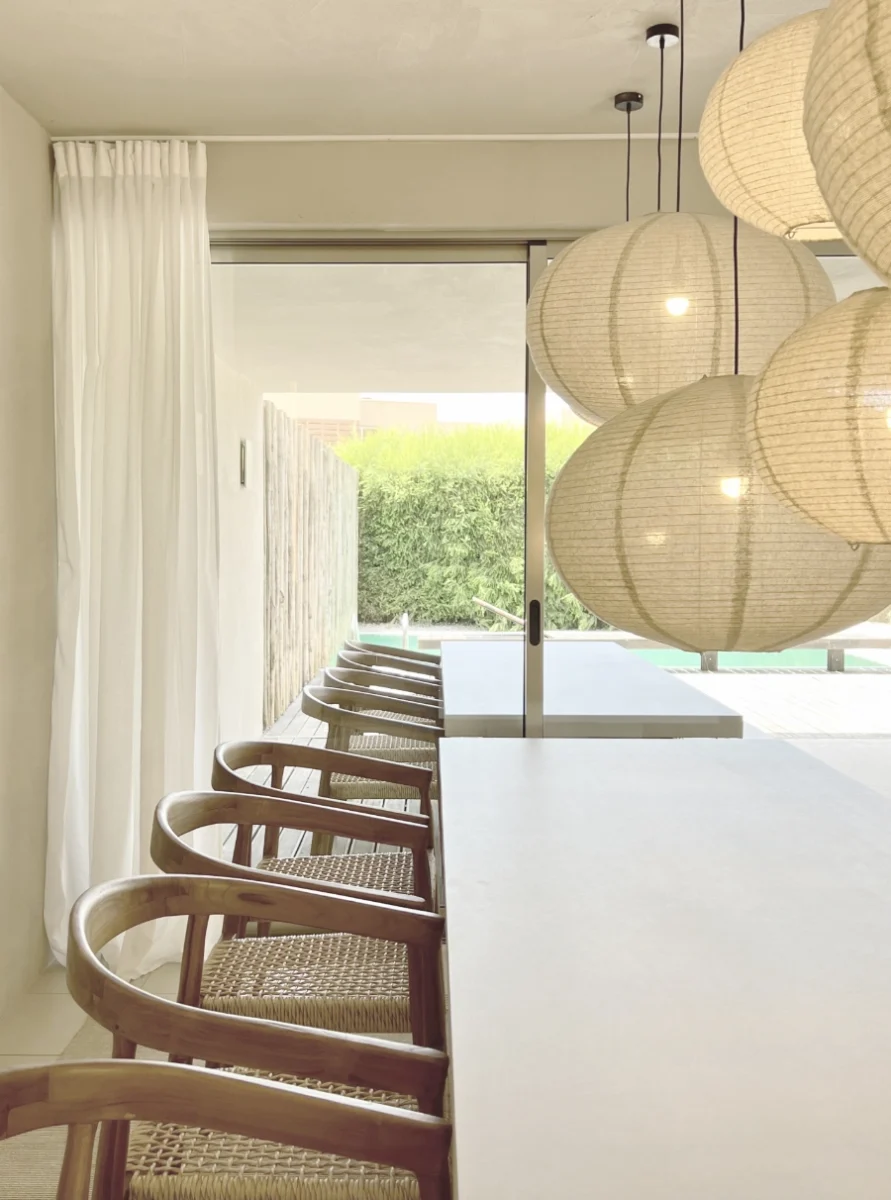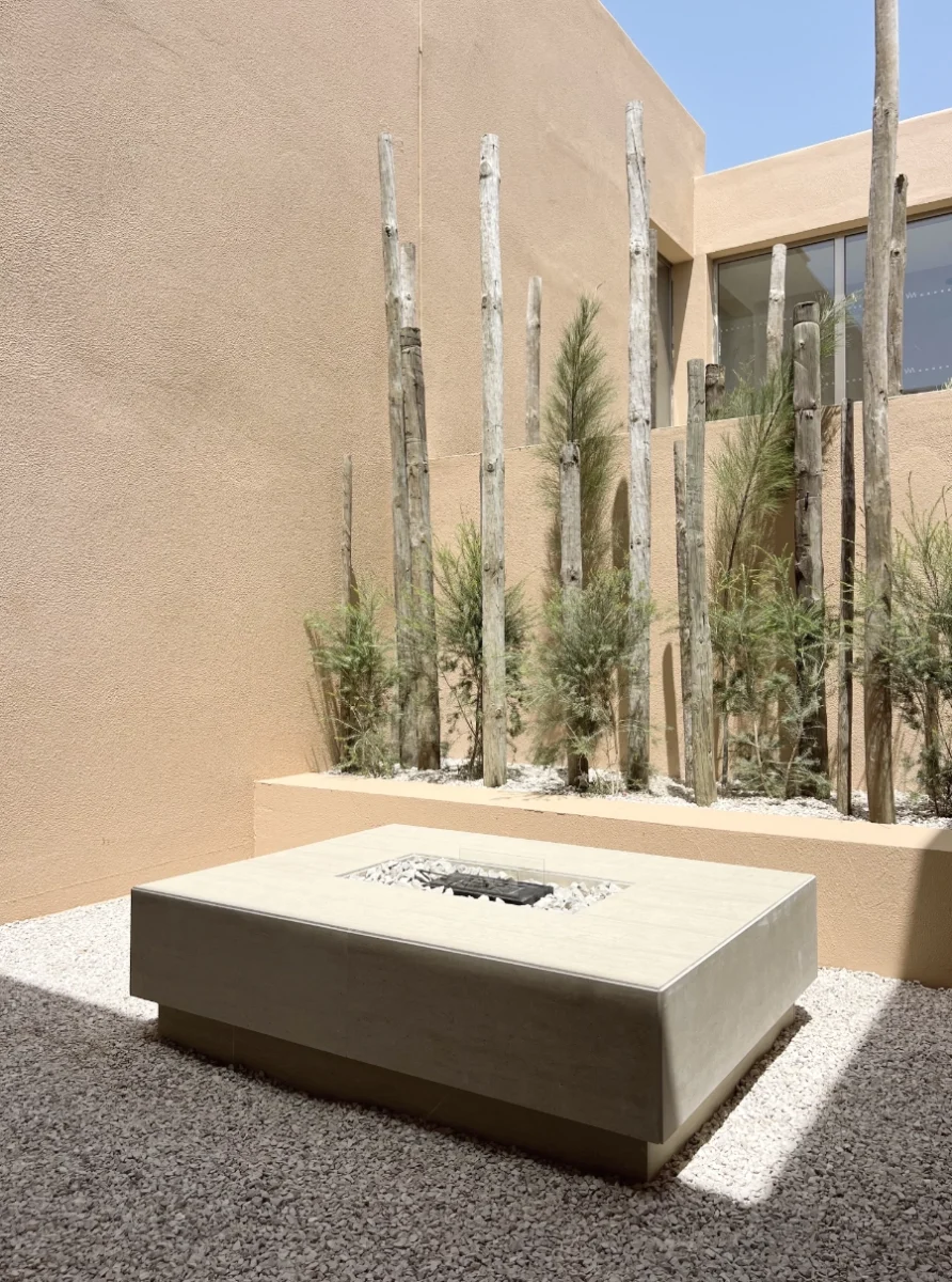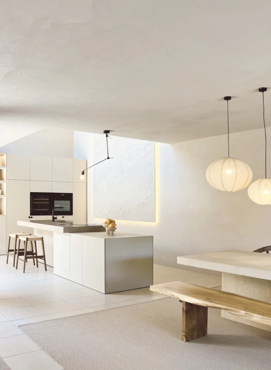 Biophilia serves as the foundation of the design, with a garden and pool area surrounded by natural elements like wood, creating privacy while fostering a deep connection to the environment. The entire project embraces the slow living philosophy, incorporating raw, natural textures and allowing materials to evoke the sensations and memories of the place.
